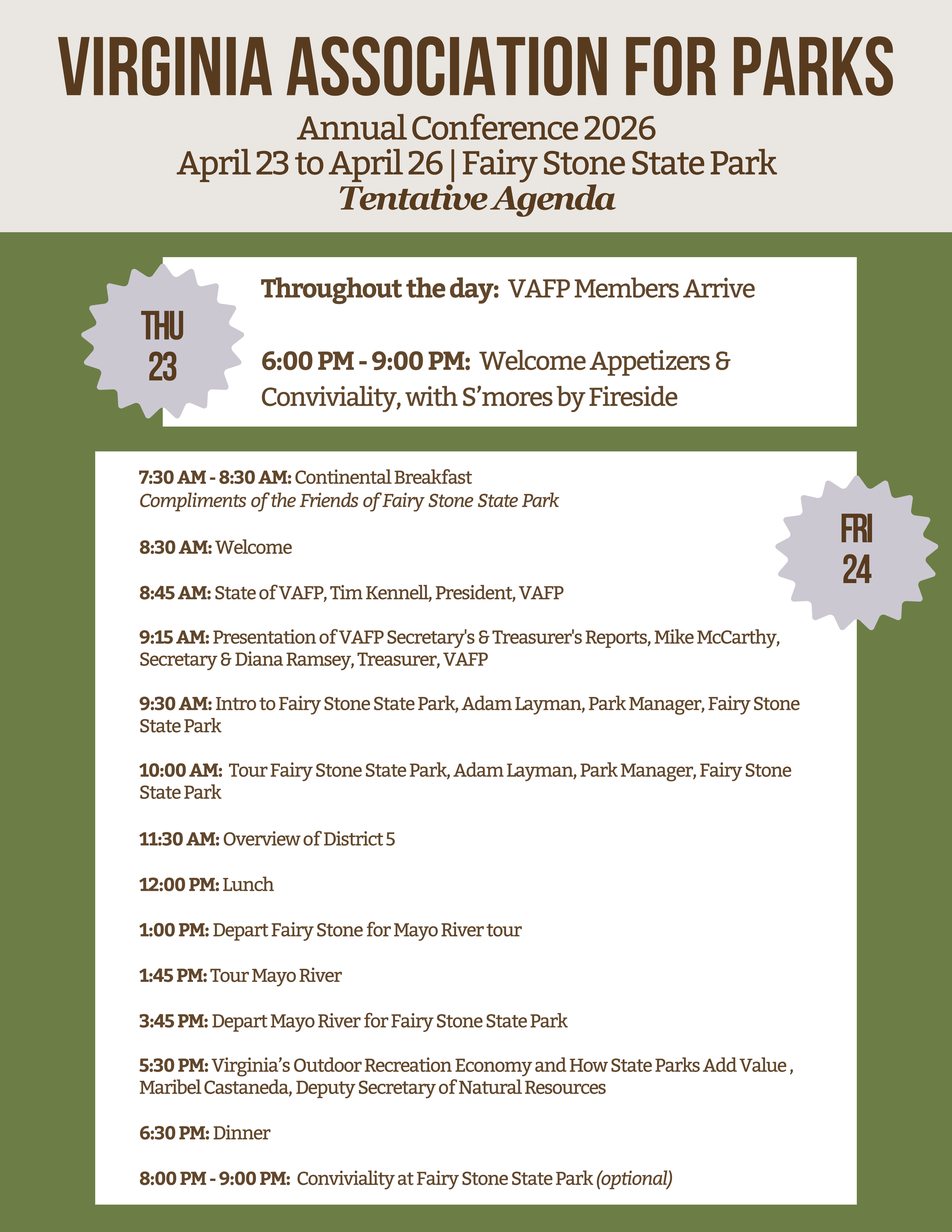 2026 Annual conferencehello@virginiaparks.orgVirginia Association for ParksPO Box 9205Norfolk, VA 23505